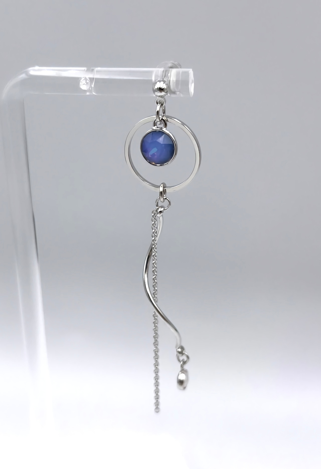 (薄く白みがかった柔らかな紫色と、奥には青色が輝く珍しい色味のクリスタルになっています。)