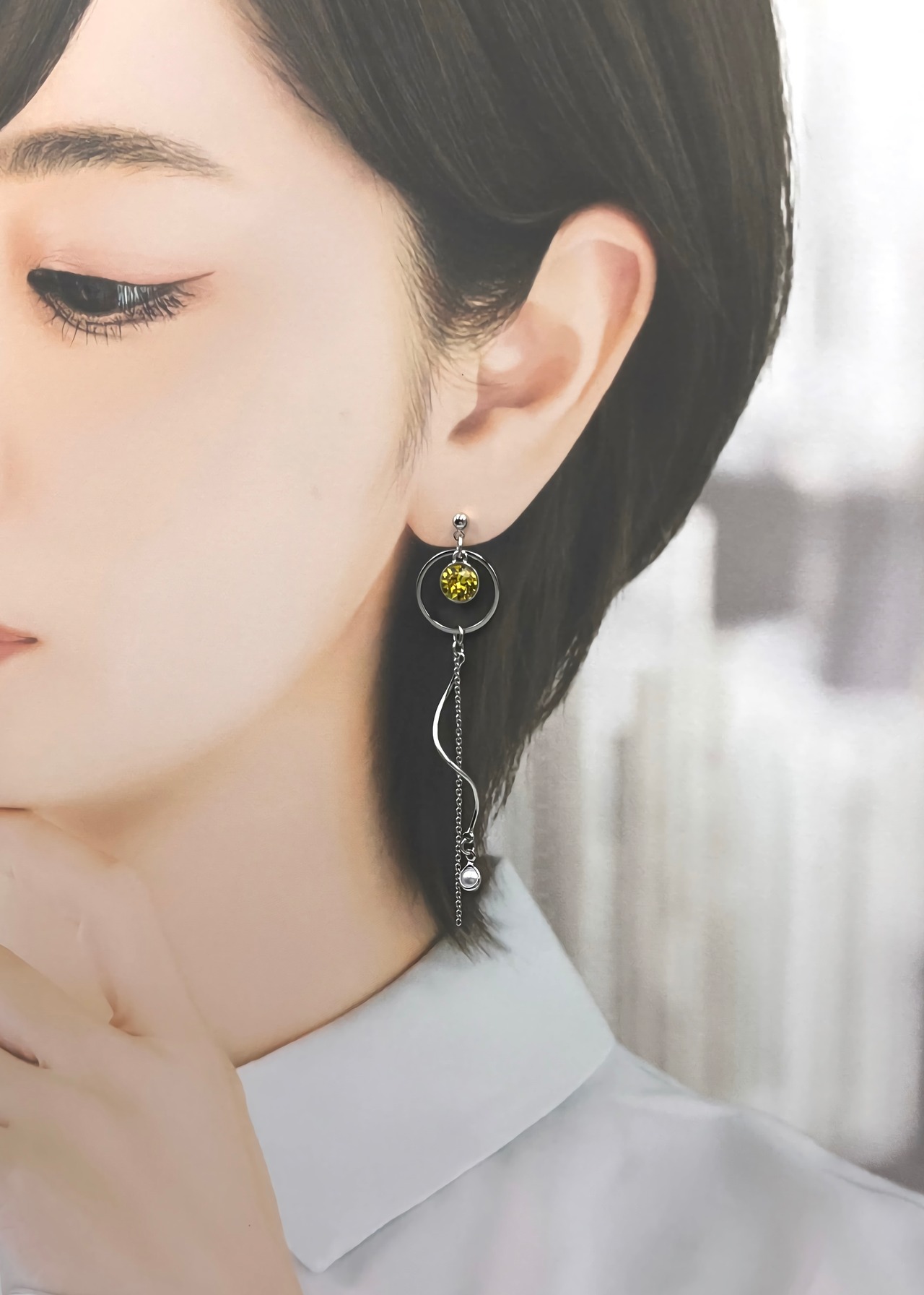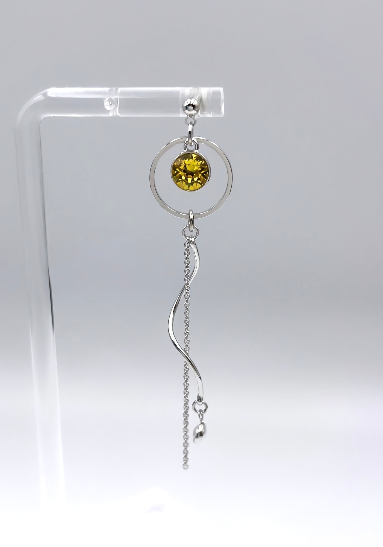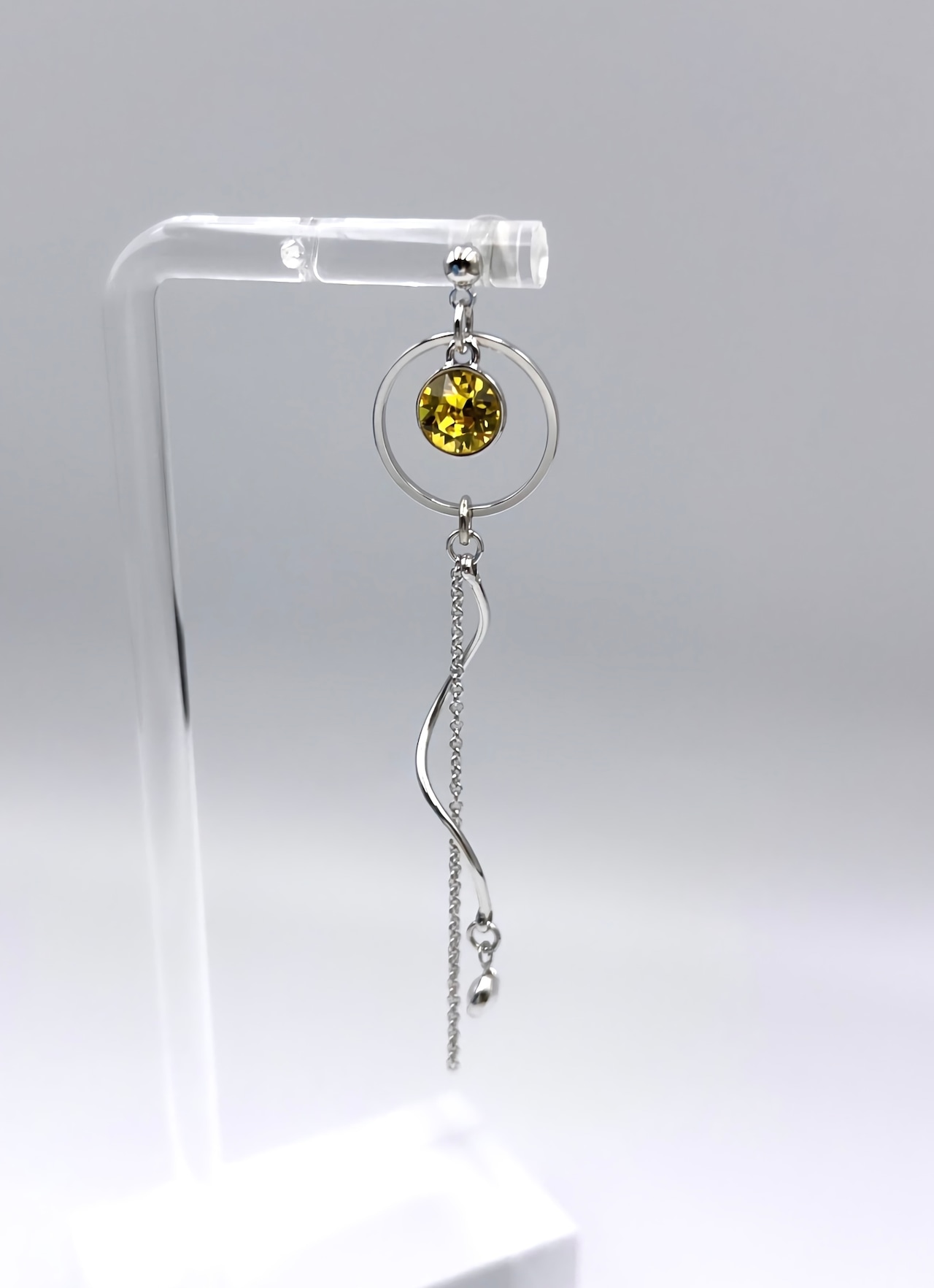 (樹脂素材のバネ式イヤリングを使用しております。イヤリングのため 強い衝撃を与えたり、激しい動きなどをされますと外れてしまう可能性がございますので予めご了承ください。
